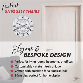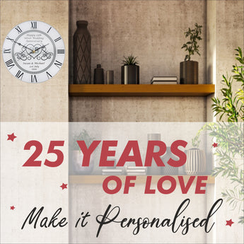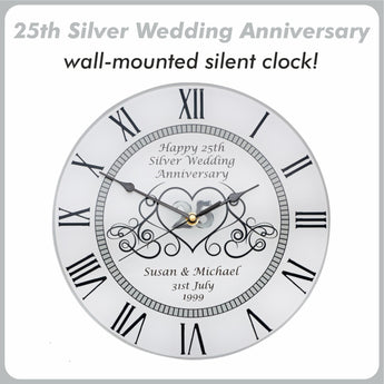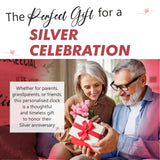 25th Silver Wedding Anniversary Clock - Bespoke Personalised Anniversary Gift (30cm Silent Clock)