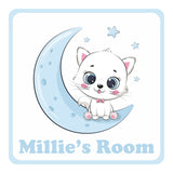 Personalised Cute Cat On A Moon Kids Bedroom Door Sign - Unique Gift