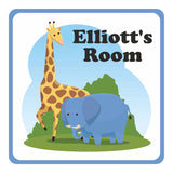 Personalised Giraffe and Elephant Kids Bedroom Door Sign - Unique Gift