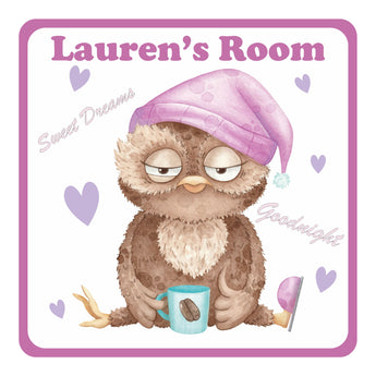 Introduce a delightful addition to your childrens' bedroom with this Personalised Goodnight Sleepy Owl Kids Bedroom Door Sign! This unique sign can be personalised with any name of your choice, crafted with premium Perspex acrylic and complete with double sided tape for easy installation. Plus, with a width and height of 19cm, it's the perfect size for any bedroom door! Get your own today and let the goodnight fun begin!