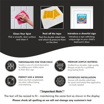 Made from premium Perspex acrylic, it's perfect for making sure your kids sleep soundly, knowing their bedroom is safe. Plus, it's made just for them, printed with their name. Stick it up and make a roar-some statement!