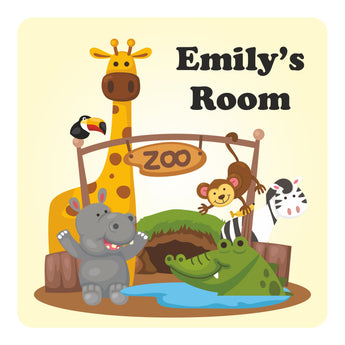 Personalised Yellow Zoo Kids Bedroom Door Sign - Unique Gift