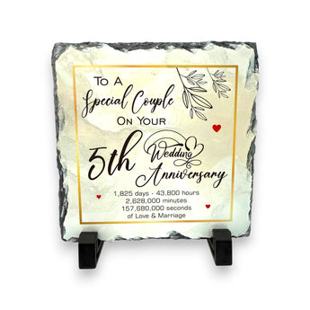Celebrate 1,825 days (and 157,680,000 seconds 😉) of marriage with this elegant, natural slate keepsake. Perfect for any special couple’s anniversary—or a heartfelt gift to friends!
