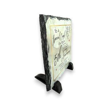 5th Wedding Anniversary Slate for a Special Couple – Handcrafted Natural Slate Plaque with Stand – Romantic Keepsake – 15cm x 15cm