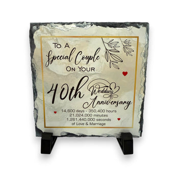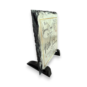 40th Wedding Anniversary Slate for a Special Couple – Handcrafted Natural Slate Plaque with Stand – Romantic Keepsake – 15cm x 15cm