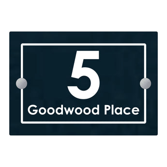Make an exquisite entrance with The Goodwood Modern House Sign. Crafted with a sleek Perspex acrylic front and an anthracite grey aluminium composite rear, this 20cm x 14cm sign is finished with satin silver stand off fixings for a timeless and luxurious look. Welcome guests in style with this elegant and exclusive sign.
