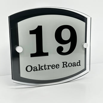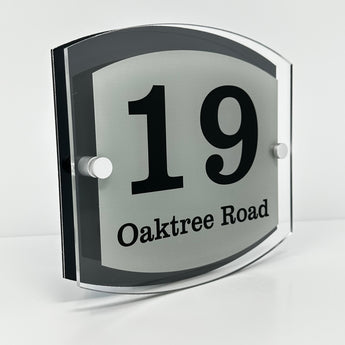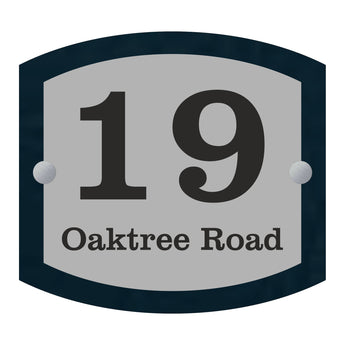 The Oaktree Modern House Sign with Perspex Acrylic Front, Anthracite Grey Rear Panel and Satin Silver Stand Off Fixings ( Size - 20cm x 18cm )