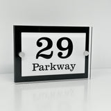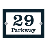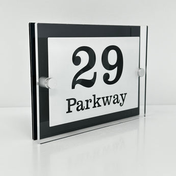 The Parkway Modern House Sign with Perspex Acrylic Front, Anthracite Grey Rear Panel and Satin Silver Stand Off Fixings ( Size - 20cm x 14cm - WHITE BACKGROUND CLEAR TEXT )