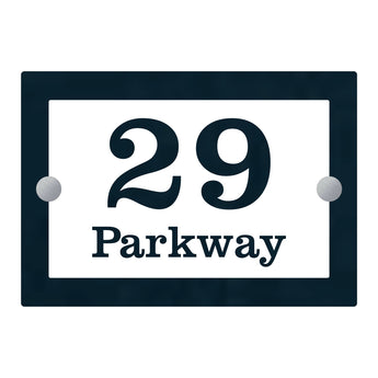 Introducing our Parkway Modern House Sign. Crafted from premium Perspex acrylic and finished with an anthracite grey rear panel, this stylish sign is designed to bring sophistication to any modern home. The sleek steel-hue stand-offs lend an air of exclusivity, while the clear text allows for the rear panel to be easily visible. Ideal for adding an elegant touch to your entrance.