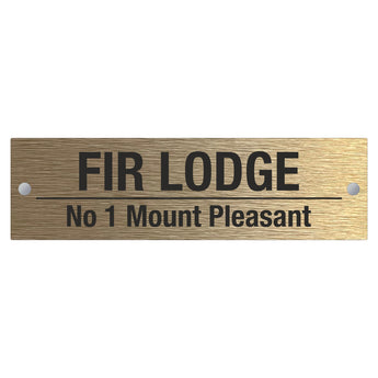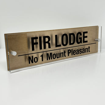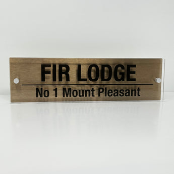 The Fir Lodge Modern House Sign with Perspex Acrylic Front, Brass Rear Panel and Satin Silver Stand Off Fixings ( Size - 42cm x 12cm )