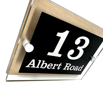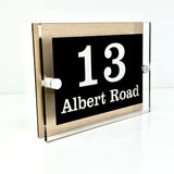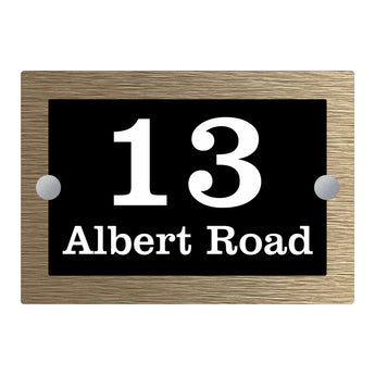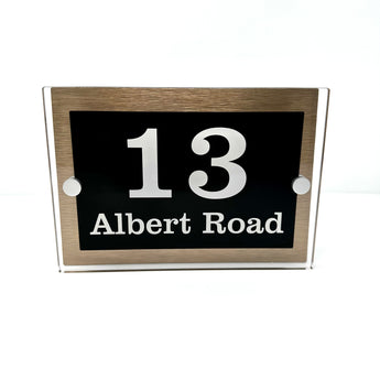 The Albert Modern House Sign with Perspex Acrylic Front, Brass Rear Panel and Satin Silver Stand Off Fixings ( Size - 20cm x 14cm )