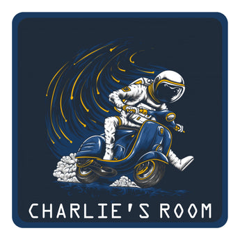Personalised Astronaut On A Bike Kids Bedroom Door Sign - Unique Gift