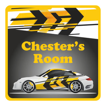 Personalised Grey Black And Yellow Sports Car Kids Bedroom Door Sign - Unique Gift