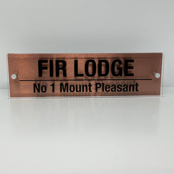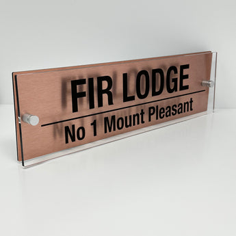 The Fir Lodge Modern House Sign with Perspex Acrylic Front, Copper Rear Panel and Satin Silver Stand Off Fixings ( Size - 42cm x 12cm )