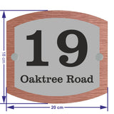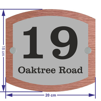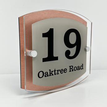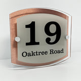 The Oaktree Modern House Sign with Perspex Acrylic Front, Copper Rear Panel and Satin Silver Stand Off Fixings ( Size - 20cm x 18cm )