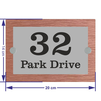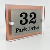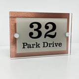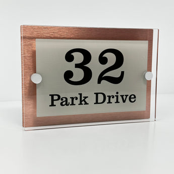 The Park Drive Modern House Sign with Perspex Acrylic Front, Copper Rear Panel and Satin Silver Stand Off Fixings ( Size - 20cm x 14cm )