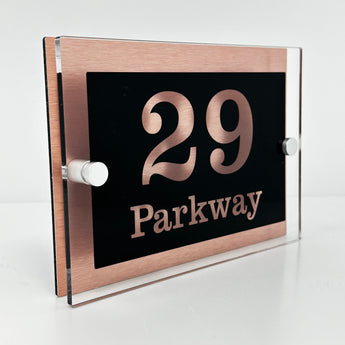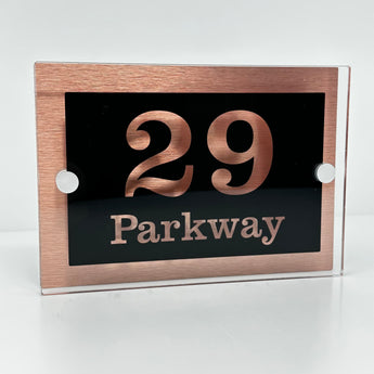 The Parkway Modern House Sign with Perspex Acrylic Front, Copper Rear Panel and Satin Silver Stand Off Fixings ( Size - 20cm x 14cm )