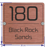 This stylish house sign is perfect for adding some modern sophistication to your home. The 20cm x 20cm brushed copper panel is made from aluminium composite material and comes with satin silver stand off fixings for easy installation. Add a sleek and modern touch to your home with this attractive house sign.