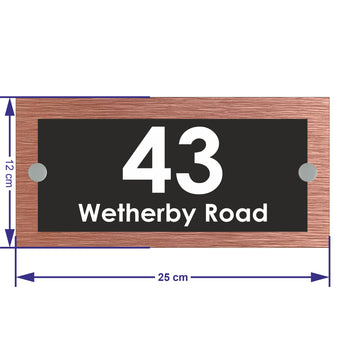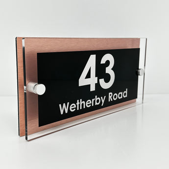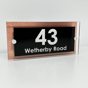 The Wetherby Modern House Sign with Perspex Acrylic Front, Copper Rear Panel and Satin Silver Stand Off Fixings ( Size - 25cm x 12cm )