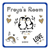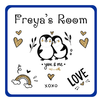 Personalised Cute Penguins In Love Kids Bedroom Door Sign - Unique Gift