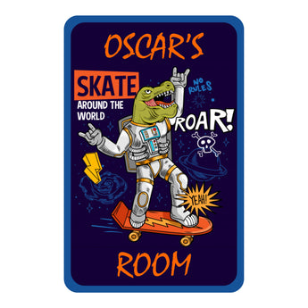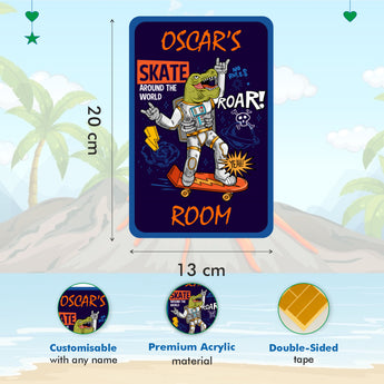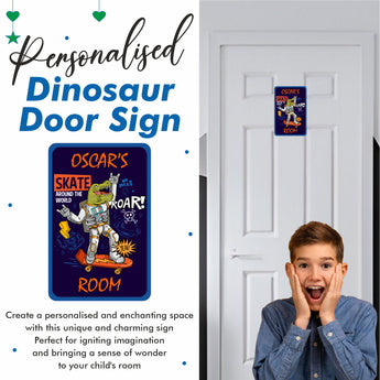 Personalised Space Dinosaur On Skateboard Kids Bedroom Door Sign - Unique Gift