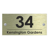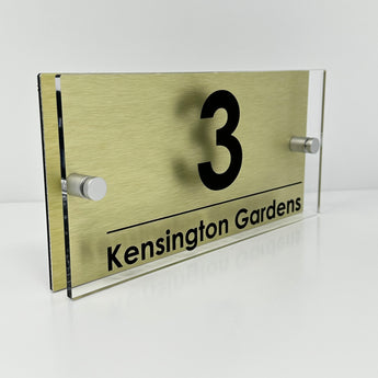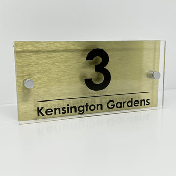 The Kensington Modern House Sign with Perspex Acrylic Front, Gold Rear Panel and Satin Silver Stand Off Fixings ( Size - 25cm x 12cm )