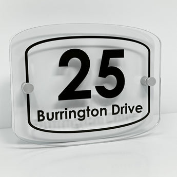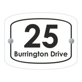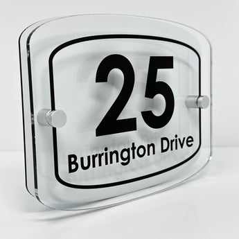 The Burrington Modern House Sign with Perspex Acrylic Front, White Rear Panel and Satin Silver Stand Off Fixings ( Size - 20cm x 16cm )
