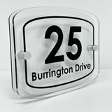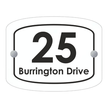 This Burrington Modern House Sign is constructed with a 20cm x 16cm Perspex Acrylic front panel, white rear panel, and satin silver stand off fixings. Sturdy aluminium composite rear panel and high-quality Perspex acrylic provide a glass-like effect, with a firm and stylish mount secured by aluminium standoffs.