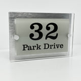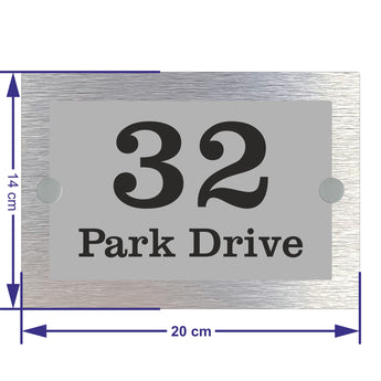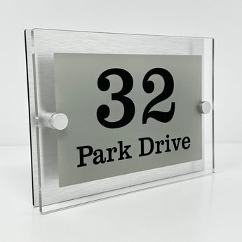 The Park Drive Modern House Sign with Perspex Acrylic Front, Silver Rear Panel and Satin Silver Stand Off Fixings ( Size - 20cm x 14cm )
