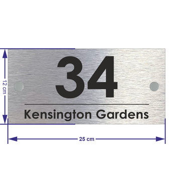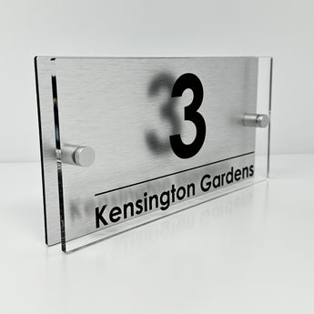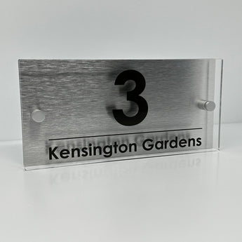 The Kensington Modern House Sign with Perspex Acrylic Front, Silver Rear Panel and Satin Silver Stand Off Fixings ( Size - 25cm x 12cm )