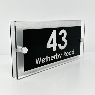 The Wetherby Modern House Sign with Perspex Acrylic Front, Silver Rear Panel and Satin Silver Stand Off Fixings ( Size - 25cm x 12cm )
