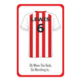 Personalised Red and White Striped Football Shirt Kids Bedroom Door Sign - Unique Gift