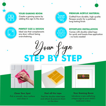 Get ready to level up your child's gaming room with this one-of-a-kind Gaming Zone Door Sign! Crafted from top-of-the-line Perspex acrylic and measuring W-25cm x H-10cm, it's perfect for any kid who loves to game. Plus, we've included double sided tape for easy hanging.
