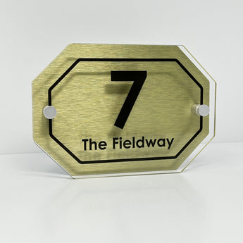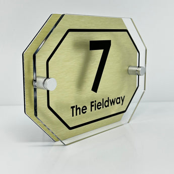 The Fieldway Modern House Sign with Perspex Acrylic Front, Gold Rear Panel and Satin Silver Stand Off Fixings ( Size - 20cm x 14cm )