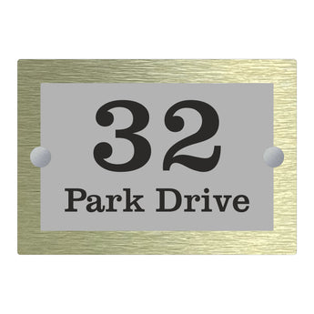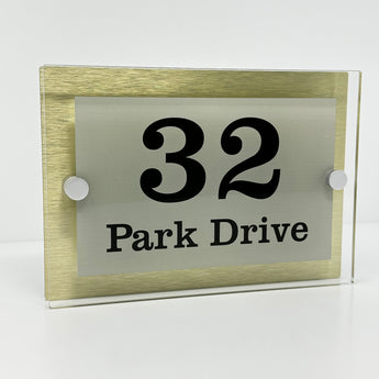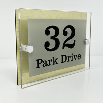 The Park Drive Modern House Sign with Perspex Acrylic Front, Gold Rear Panel and Satin Silver Stand Off Fixings ( Size - 20cm x 14cm )