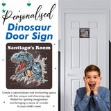 Personalised T Rex Dinosaur Coming Out Of Wall Kids Bedroom Door Sign - Unique Gift