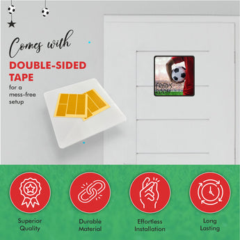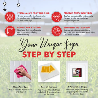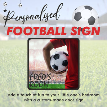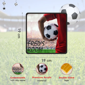 Add a special touch to your child's bedroom door with a personalised and stylish Football Under Arm Design Kids Bedroom Door Sign! Crafted from premium Perspex acrylic, it customises with any name, adding that extra special and unique touch. With a 19cm width and height, and complete with double sided tape for easy fixing, it will look great and last well.