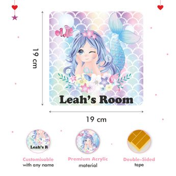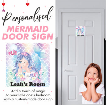 Personalised Multi-Colour Mermaid Kids Bedroom Door Sign - Unique Gift
