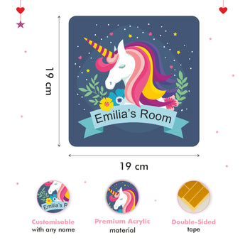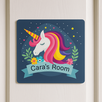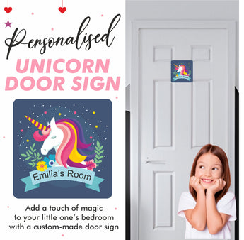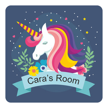 Personalised Pretty Unicorn With Flowers Kids Bedroom Door Sign - Unique Gift