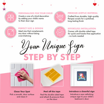 Give your little one a door sign that's truly magical with this Personalised Pretty Unicorn With Flowers Kids Bedroom Door Sign! Crafted from premium Perspex acrylic, this 19x19cm sign is beautifully printed with a majestic unicorn and delicate flowers. Sweetly personalised with any name, this sign will make the perfect, unusual gift your kiddo will be proud to show off!