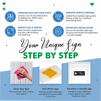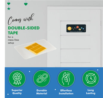 Make any bedroom an intergalactic adventure with this personalised Solar System kids bedroom door sign. Crafted with premium Perspex acrylic, it comes with double-sided tape for easy mounting. Personalise it with your child's name, customising it to perfection. Out of this world style and convenience in one swoop!