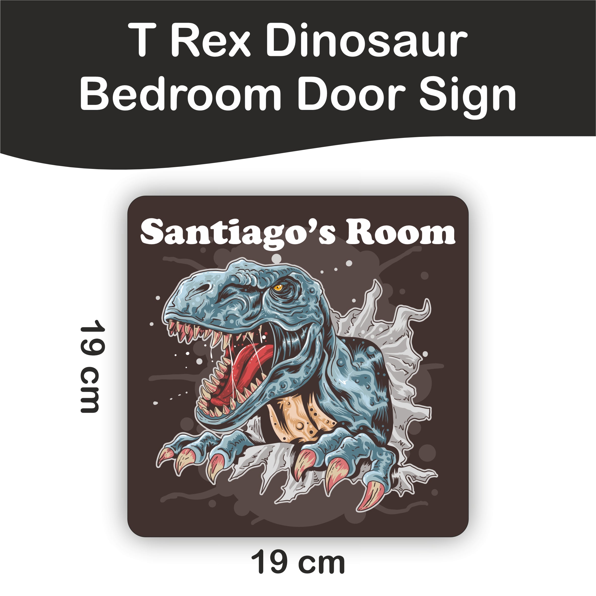 Personalised T Rex Dinosaur Coming Out Of Wall Kids Bedroom Door Sign