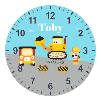 Construction/Digger Kids Silent Clock - Bespoke Personalised Special Gift