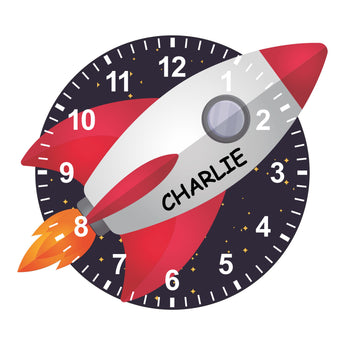 Rocket Ship Shaped Kids Silent Clock - Bespoke Personalised Special Gift