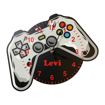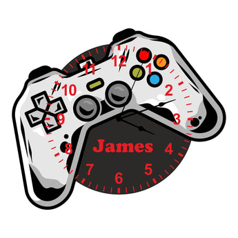 Unique Black Gaming Controller Shaped Kids Silent Clock - Bespoke Personalised Special Gift