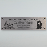 Bench Memorial Plaque - Silhouette With Red Heart Aluminium Plaque - Personalised With Any Name ( 7cm x 25cm )