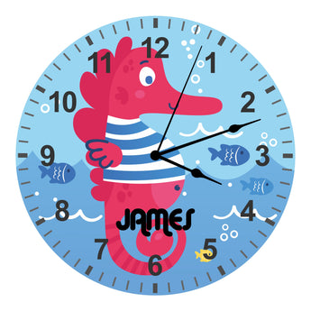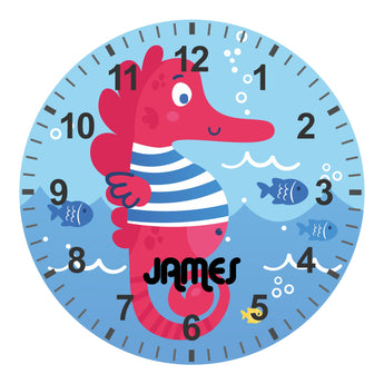 Under The Sea - Kids Seahorse Silent Clock - Bespoke Personalised Special Gift