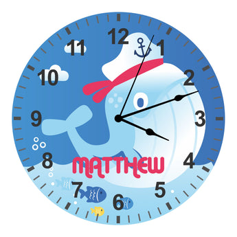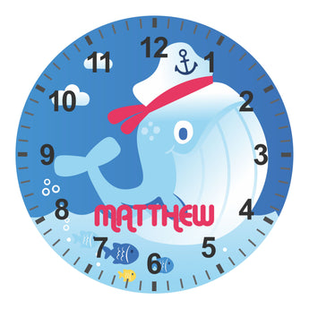 Under The Sea - Kids Whale Silent Clock - Bespoke Personalised Special Gift