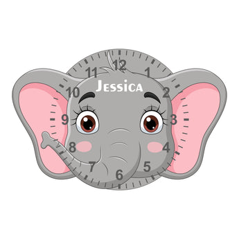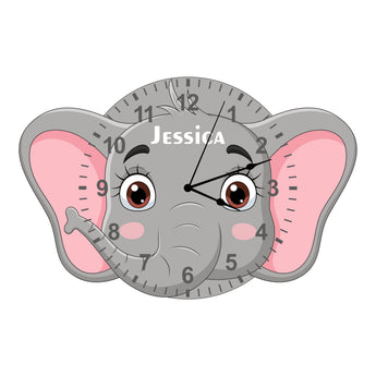Elephant Shaped Kids Silent Clock - Bespoke Personalised Special Gift