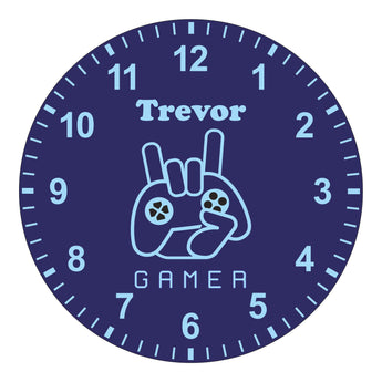 Dark Blue & Light Blue Gamer Kids Silent Clock - Bespoke Personalised Special Gift